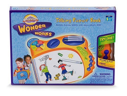 This Talking Picture Book from Cranium unlocks your creativity to get you drawing, recording and sharing your own amazing stories. Draw on reusable pages using four colorful pens and over 50 fun stickers. Then record your words, sounds and stories to go with each picture. With more than 60 surprising story-starting ideas, the Activity Spinner adds an exciting twist. Requires 4 "AA" batteries (included).